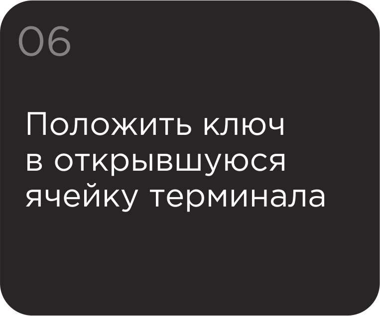 Заберите все свои вещи из автомобиля, так как ключ Вы оставите в Терминале внутри дилерского центра.